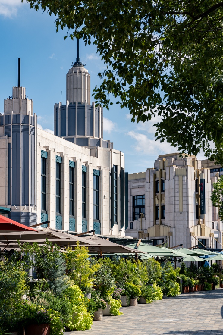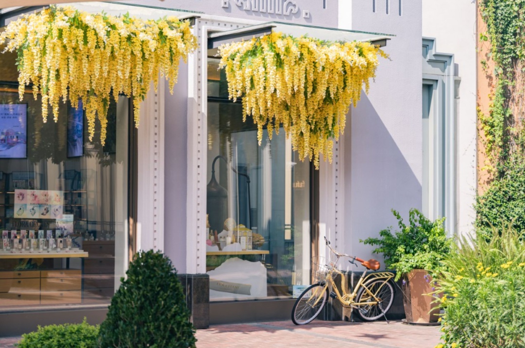 从空中俯瞰,比斯特上海购物村整个建筑群呈新月型,面星愿湖而建,四条主街贯穿三条弧形街道,整体建筑呈现art deco风格,可以说这里本身就是一处海派文化具体而微的存在。艺术在这里是品牌基因的一个组成部分,不论从建筑风格、道路命名,到艺术家风格的休息室洗手间,或是随着季节不断出新每季不同的主题装置和园艺布置,在为消费者打造购物空间的同时,休闲、旅游的属性同样被完美地呈现出来。