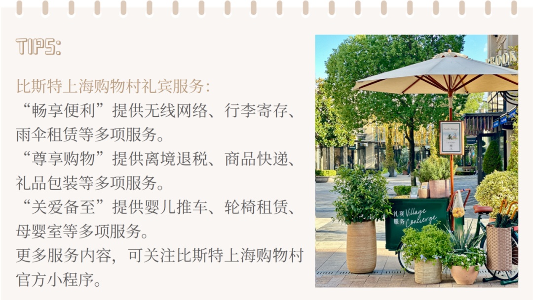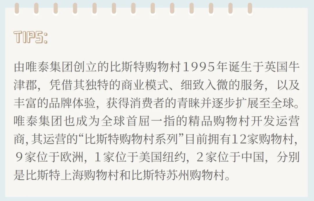 “比斯特购物村系列”始终致力于打造“提供非凡购物体验的奢华购物村”。在比斯特上海购物村,200+精品店鳞次栉比。面对如此众多的选择,早年间拿着清单或照片照着买的购物方式早已out,比斯特上海购物村为消费者提供了更为实用的购物技巧。