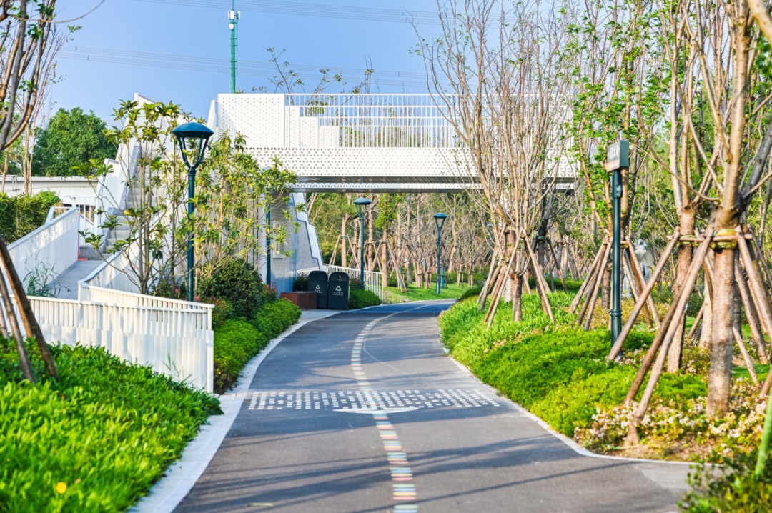 上海国际旅游度假区10k·梦享公园环绕整个度假区,沿途有完善的步道、驿站设施,且风景成画,适合慢跑、骑车。比斯特上海购物村位于度假区的东南隅,游客可以从这里的步道直接进入梦享公园散步、小憩,公园还有12处景观装置和儿童游乐设施,即使举家前往,也可各得其乐。