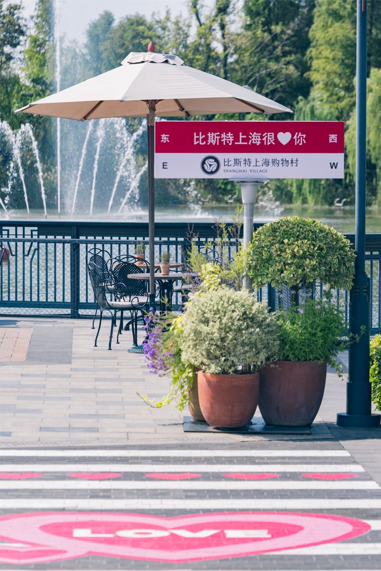 拍照打卡是社交达人的规定动作,手机先看、先吃,已是大家的共识。在比斯特上海购物村,随处都是别致的园艺和景观设计,为达人们提供了源源不断的素材。大道上门头装饰、“love”“happy”装置,乃至长椅、靠垫,会根据每季主题呈现不同的颜色和图案。街边的绿植时时更新,呈现当季的色彩和鲜花,每季还有不同的主题配合。甚至路边的比斯特服务小站,也是用绿植搭配服务小车,打造出一方精致小天地。