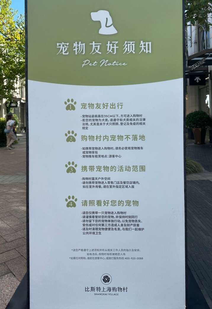 比斯特上海购物村还是一个宠物友好街区,“爹妈”们可以带上毛孩子一同来这里逛街。当然考虑到其他游客的接受度,大家需要让孩子们坐在推车里。购物村在月畔游客中心和各出入口,为有需要的朋友提供宠物推车免费租赁服务。