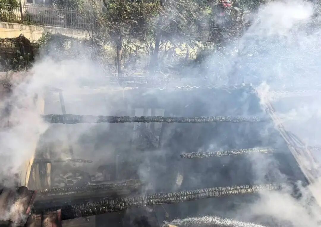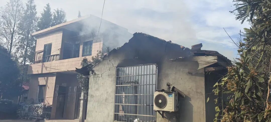 被烧房屋周围浓烟弥漫。图源:常德消防