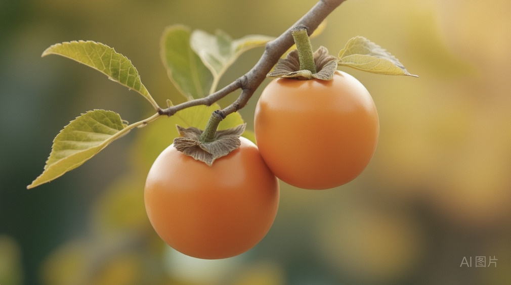 ◉ 成熟的柿子,颜色通常是饱满的橙红色或金红色,色泽均匀。颜色偏青或黄说明还不够熟。