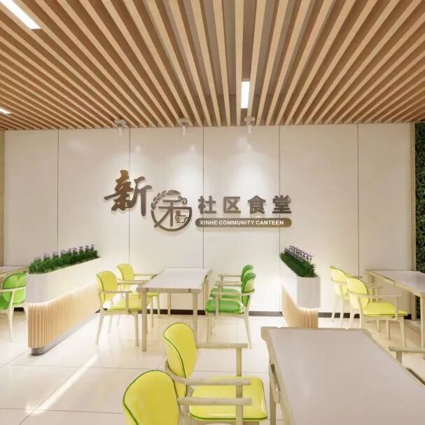 新河富盛长者食堂项目是新河镇一项重点民生工程,位于富盛经济开发区生活广场地下一层。项目规划了标准化厨房,共8个功能区组成包括选餐配餐区、就餐区、食材储存区、留样区、休闲区等。食堂提供堂食和送餐服务,有效满足辖区长者就餐需求,显著提升社区养老服务水平。
