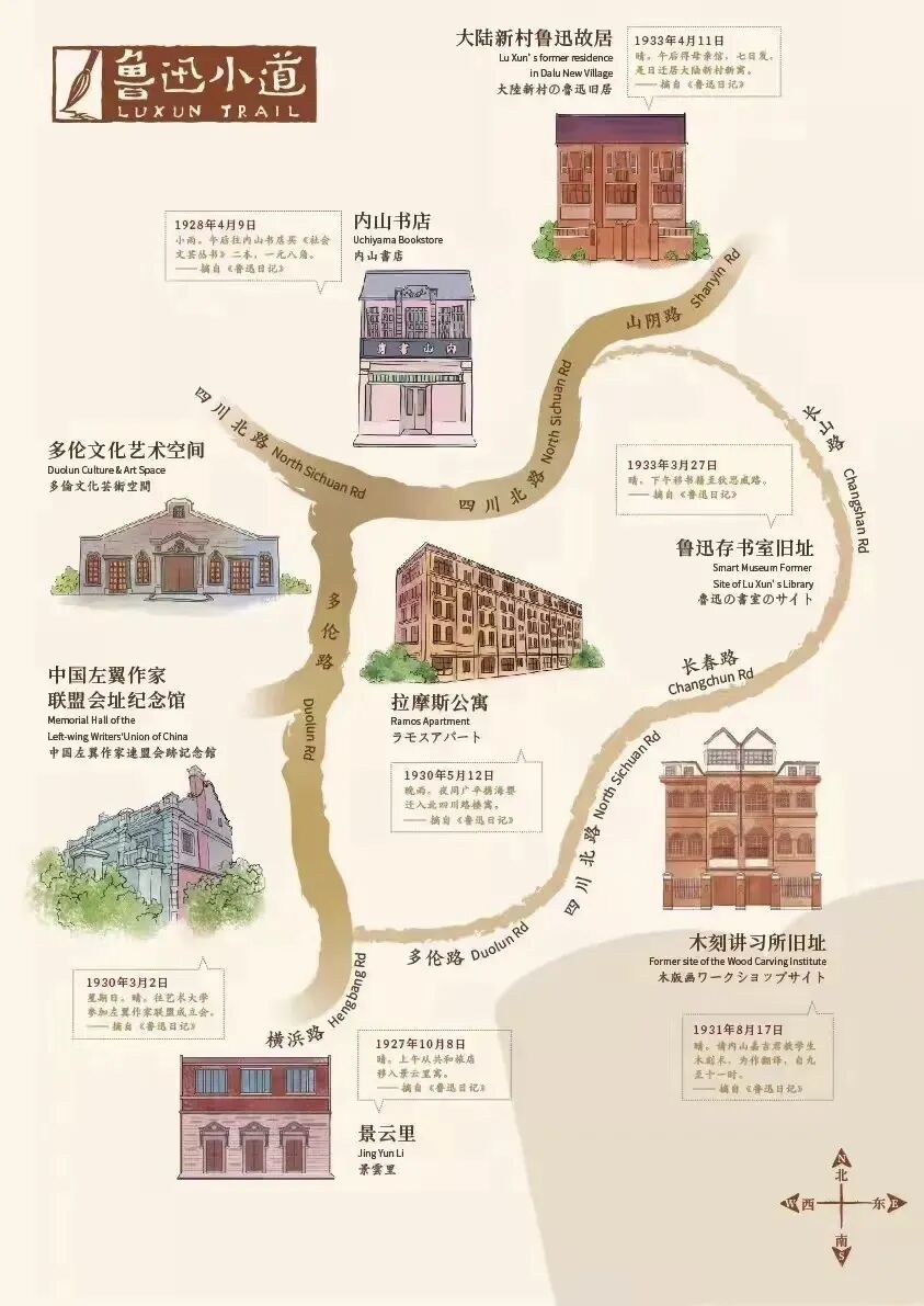 1931年8月17日至22日,鲁迅在此举办了为期6天的木刻讲习会,燃起了中国新兴木刻运动的熊熊烈火。“修旧如旧”还原历史风貌的木刻讲习所旧址,一楼为资料陈列馆,二楼打造成以“艺术、文化、休闲、服务”为主题的“艺苑朝华”社区会客厅。