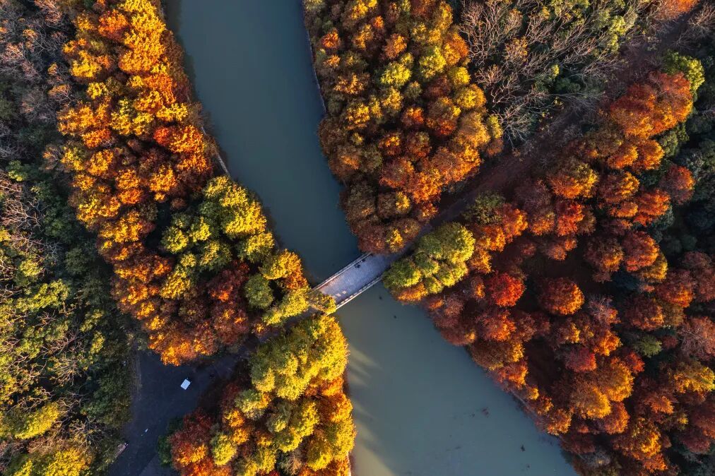 秋末冬初,万物渐寂,唯杉树独美。近年来,色彩斑斓的红杉林愈发受到市民游客的青睐。位于奉贤区的上海海湾国家森林公园,连绵壮阔、绚烂如火的杉林,已成为沪上远近闻名的“网红打卡地”。