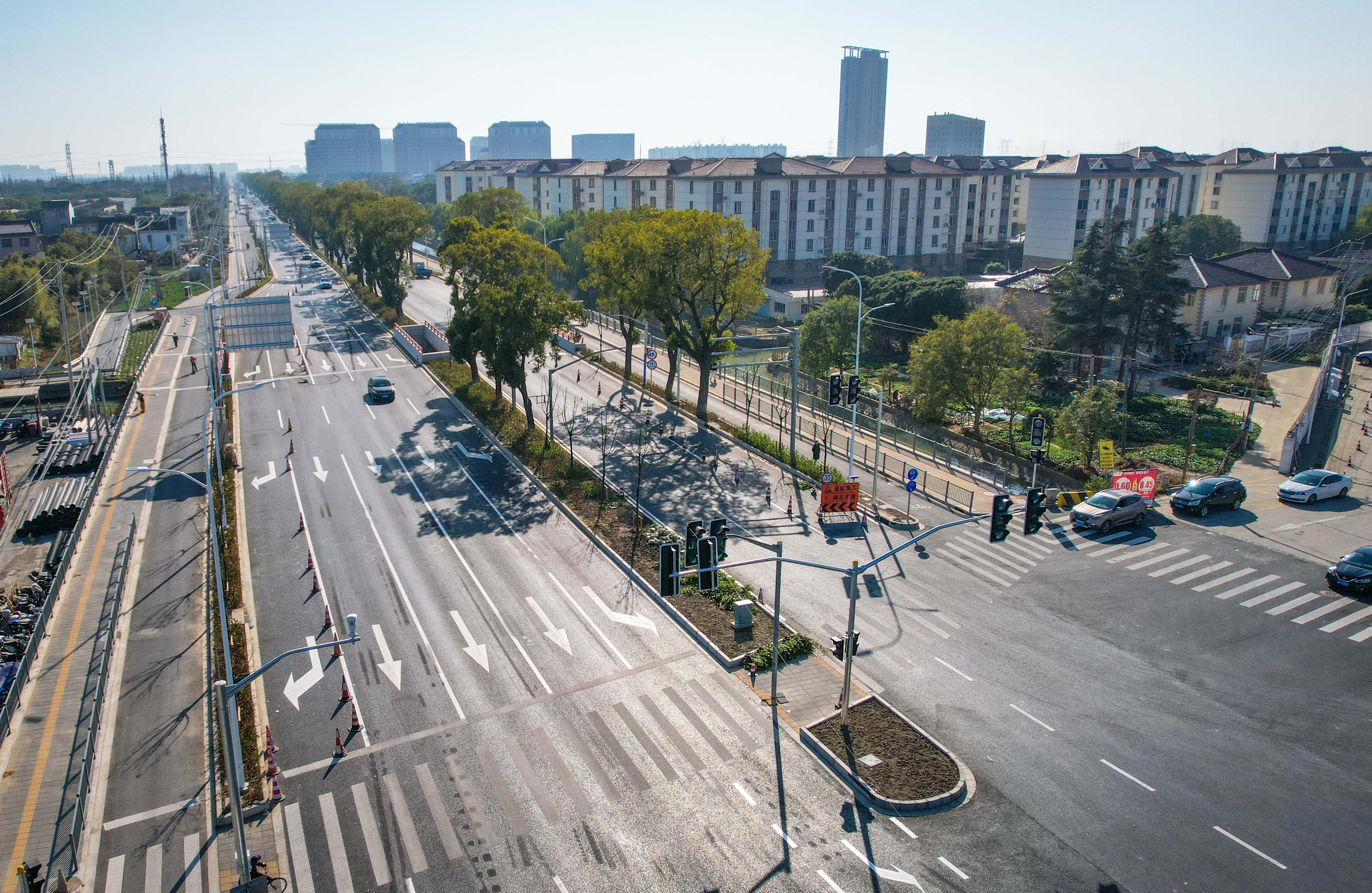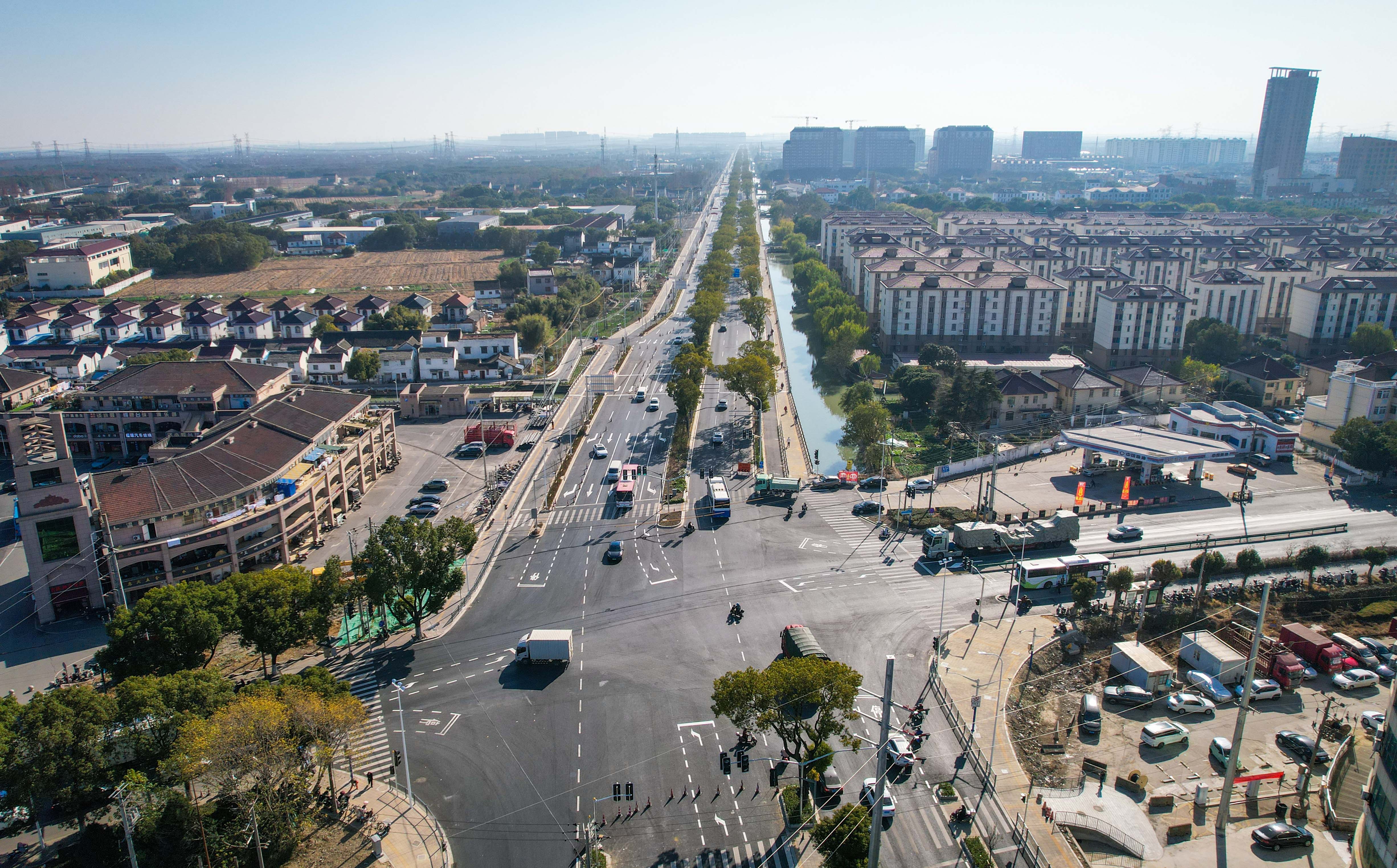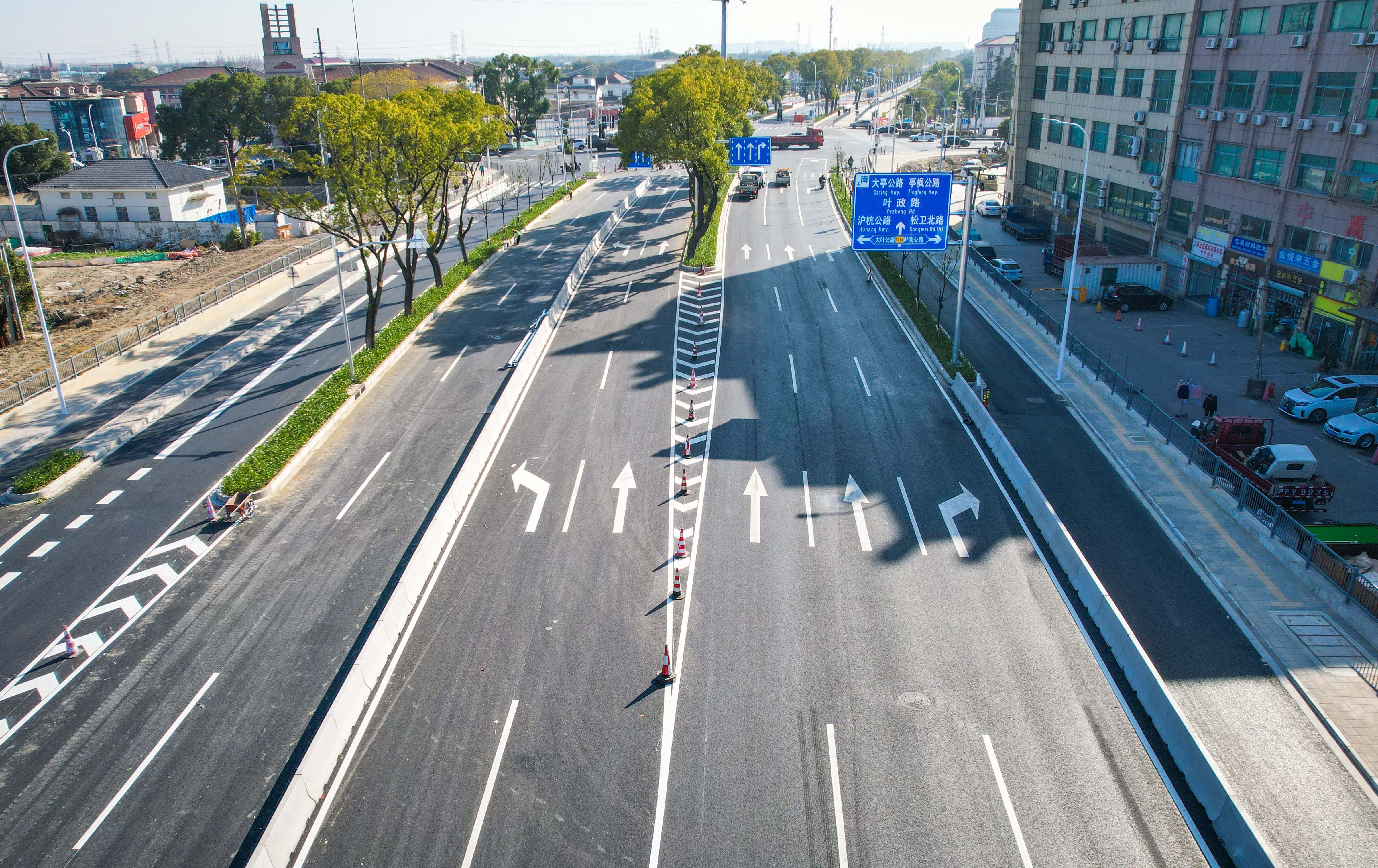 g320公路(松江金山区界—北松公路)改建工程项目已基本建成,这条全长10.16公里的交通要道即将焕新亮相。改建后,原有二快二慢的车亭公路将升级为六快二慢,城镇段同步增设两侧人行道,有效缓解路段拥堵。(记者 蔡斌 摄)