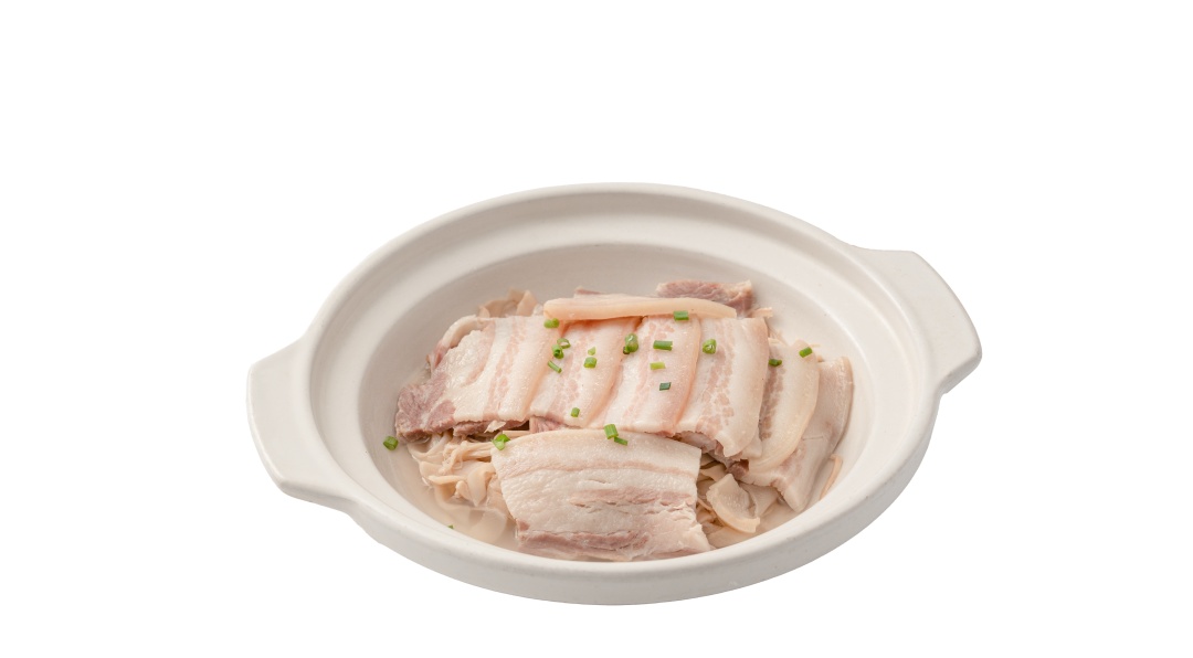 本地优质猪肉经盐渍、风干与晾晒,让风味在岁月流转中缓缓凝聚。烹饪时,与清鲜的竹笋同蒸,堪称天作之合。出锅后的咸肉色泽红白相间,入口肥而不腻,瘦而不柴;竹笋的清甜却能化解肉的咸腻。