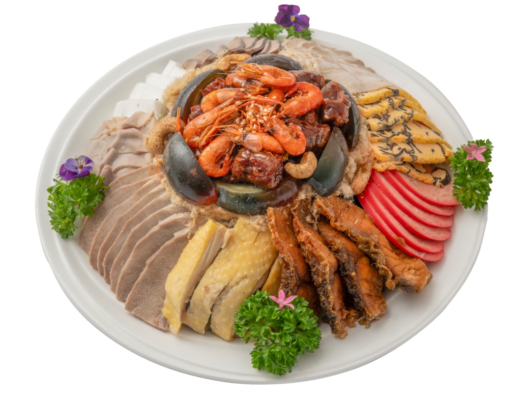 什锦盆,是“浦东老八样”宴席中深具民俗意蕴的一道冷盘。猪肝、猪肚、大红肠、熏鱼、虾、肉皮、肉松、皮蛋等于一盆之中五彩纷呈,滋味万千。这种“和而不同”的搭配,体现了民间“十全十美”的朴素祈愿。