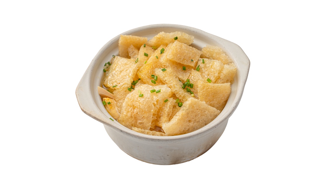 肉皮汤,是浦东本地风味中一道温暖人心的代表。核心在于三林特产的油发肉皮,其多孔结构能像海绵般充分吸收高汤精华,是汤汁浓郁的关键。久熬之下,肉皮呈现极致的软糯与弹性,入口爽滑;汤体醇厚,滋味丰腴,带有独特的脂香。