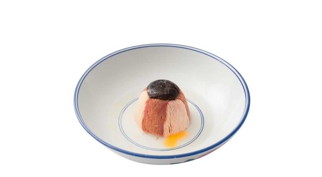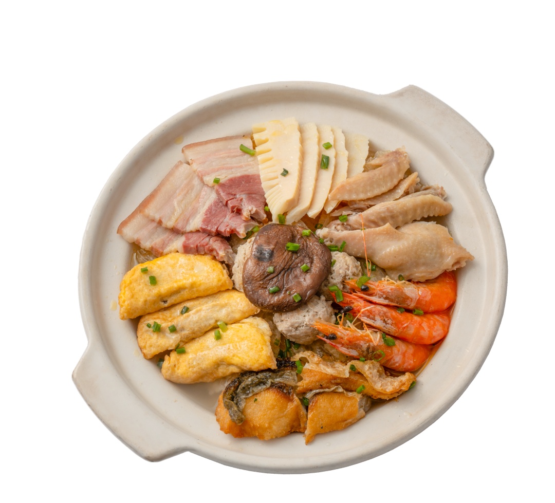 搭配吸汁的肉皮、提鲜的熏鱼,以及增香的鸡肉、咸肉等,沿用“扣蒸”技法,通过蒸汽使各色食材的风味充分融合,汤汁金黄浓郁,口感层次丰富,肉皮软糯,鲜物滑嫩,一碗尽收山海之味。