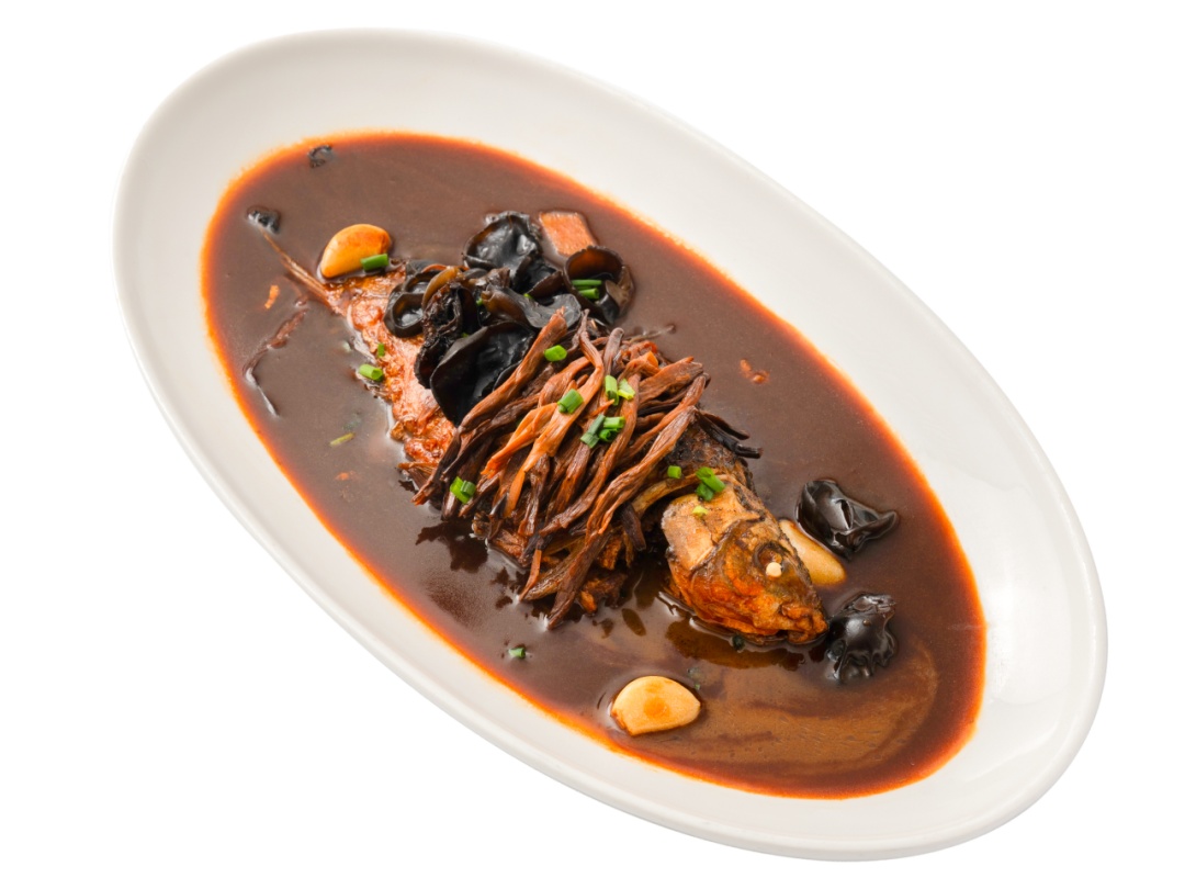 将本帮菜经典的“红烧”与“扣”技法结合,慢火烹制,成品色泽红亮诱人,酱香浓郁醇厚。鱼肉鲜嫩多汁,在咸鲜为主的基调上,回味带有一丝本帮菜标志性的甘甜。