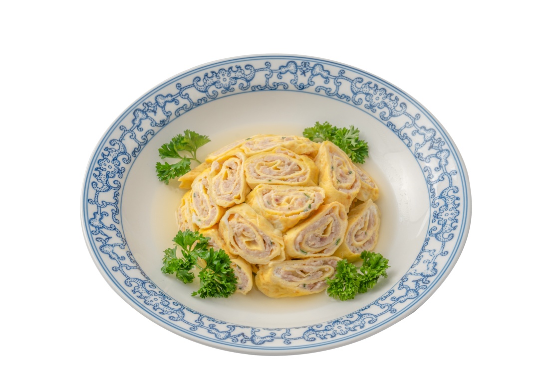 扣蛋卷,是“浦东老八样”中彰显巧思与匠心的手工菜。将本地鲜蛋液摊成匀薄如帛的蛋皮,再裹入调味的猪肉馅,卷制成形后切段,如金环般整齐扣于碗中蒸制。成品色泽金黄诱人,入口时,蛋皮的香韧与肉馅的丰腴形成美妙对比。