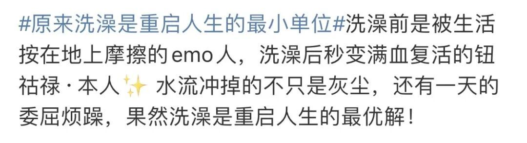 “原来洗澡是重启人生的最小单位”