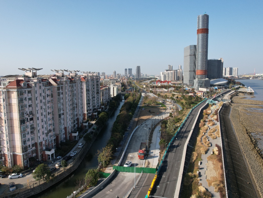 眼下,宝山滨江大道(东林路~盘古路)段已基本完成施工,比原定12月31日全面贯通的节点目标将提前11天通车。