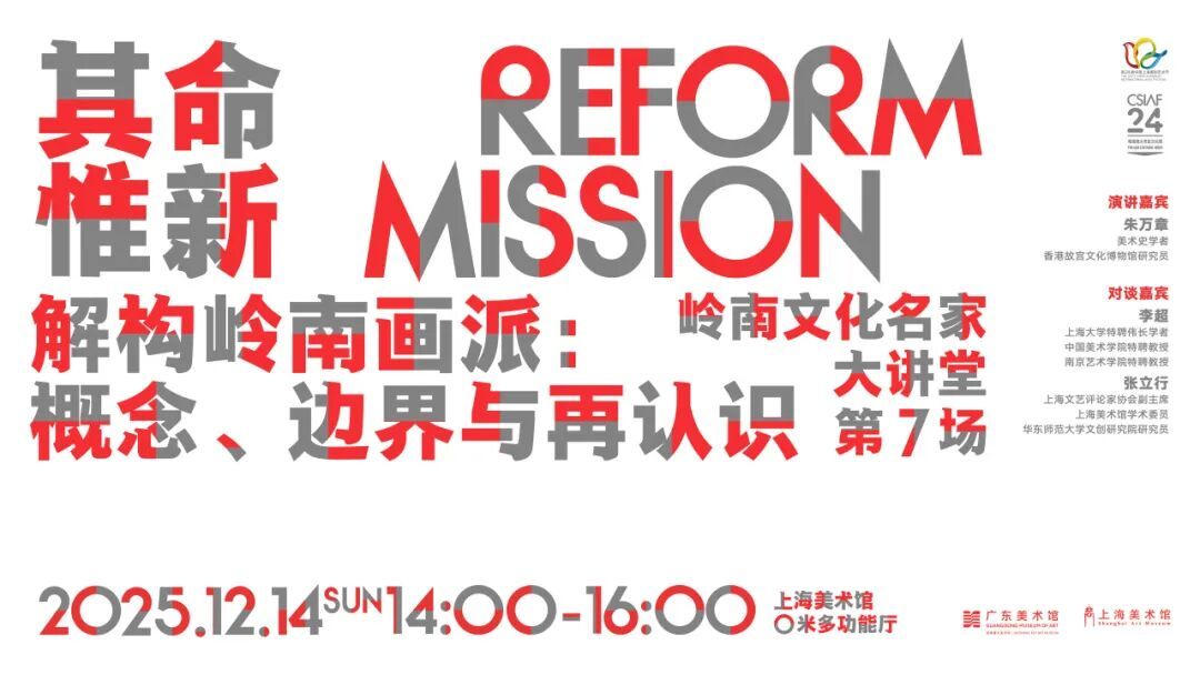 2025年12月14日下午,作为学术活动的关键一环,“岭南文化名家大讲堂”第七场在上海美术馆开讲。香港故宫文化博物馆研究员朱万章发表主题演讲,与上海大学特聘“伟长学者”李超、上海文艺评论家协会副主席张立行两位学者展开对谈。三位专家共同围绕“解构岭南画派:概念、边界与再认识”这一主题展开讨论,为厘清这一重要画派的历史源流与精神内核提供了多元视角与进行了深度思辨。