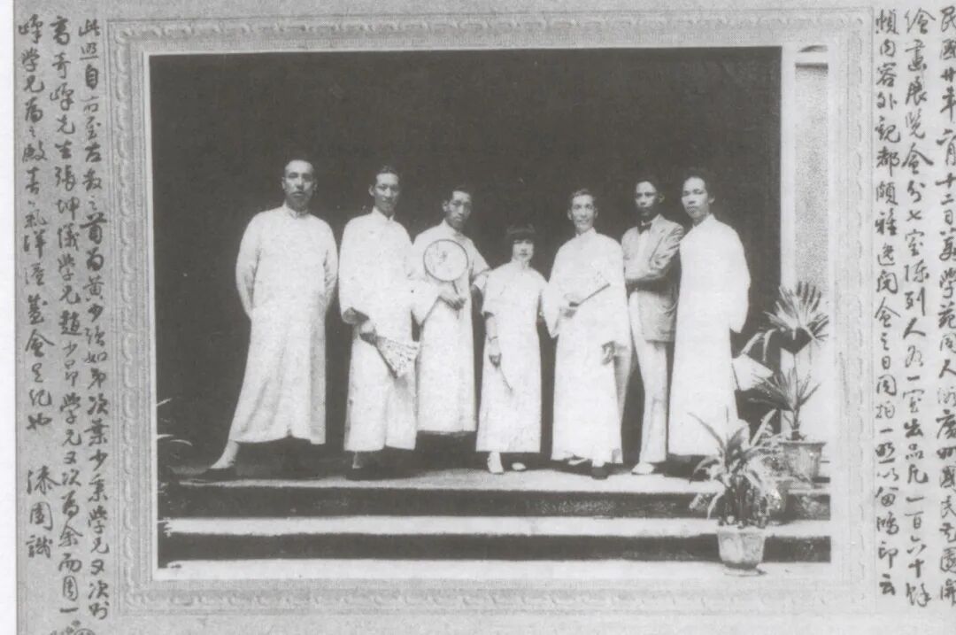 1931年6月12日,高其峰和天风诸子合影,右起:黄少强、叶少秉、高奇峰、张坤仪、赵少昂、何漆园、周一峰。