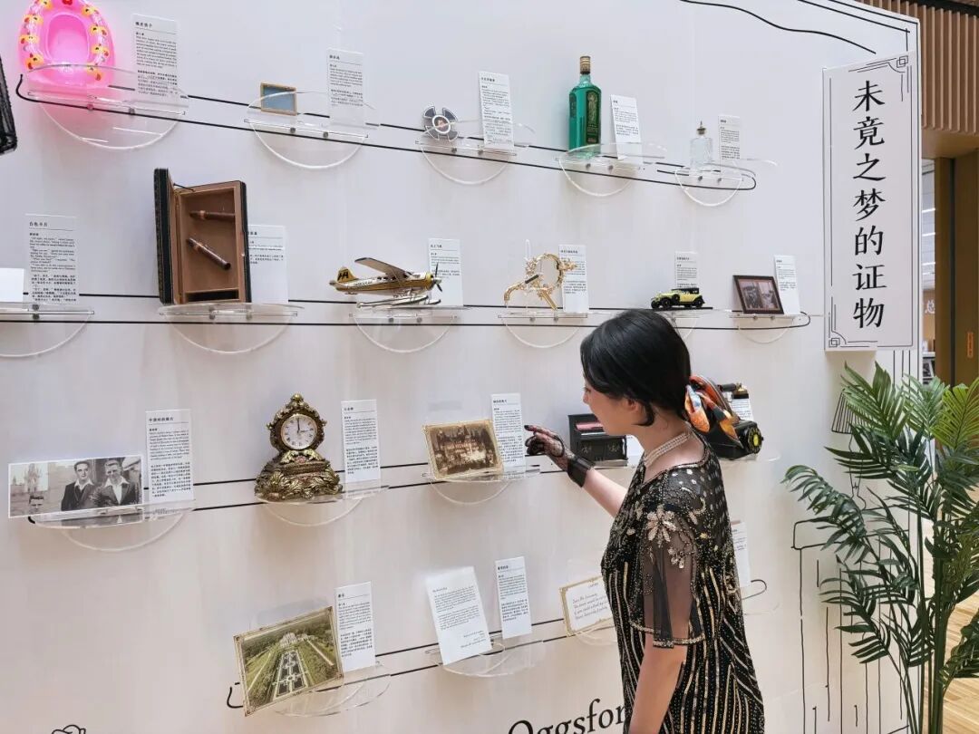 “爵士时代的回响”主题沉浸展正在火热展出中!如果想身临其境感受“盖茨比到底是谁”,在“未竟之梦的证物”展区或许能找到答案。这里陈列了25种代表性物品及衣物,这些物品凝结了盖茨比的梦想与情感。让我们一起通过这些物品,拼凑起杰伊·盖茨比的轮廓。