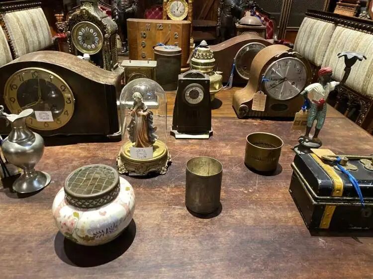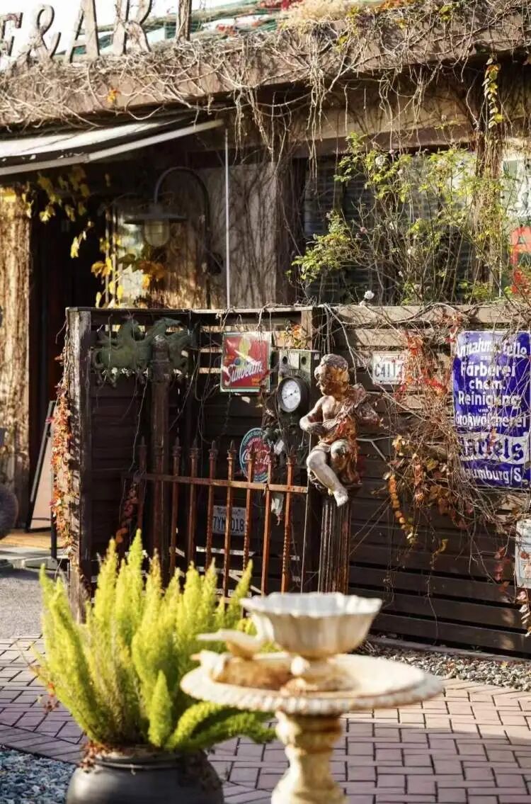 穿过贴着复古车牌的木栅栏,3号厅的两张大长桌与气派壁炉组合,瞬间将人带入古堡会客区,典雅的水晶吊灯与墙上的油画相得益彰;沿着木栈道走过大草坪,5号主展厅的十余间“样板房”演绎着多样欧式风情,法国洛可可的柔美曲线、西班牙哥特式的庄重典雅、英国庄园风的沉稳大气,搭配瓷器、银器、老挂钟等装饰,让人仿佛置身百年前的欧洲宅邸;6号厅的工业风仓储陈列与8号厅的精品小物橱柜形成鲜明对比,而2号厅的西部牛仔式自回木门后,藏着一个充满蒸汽朋克风的休闲空间,老式唱片机流淌着爵士乐,满墙酒柜与高脚桌椅营造出地道的法式酒吧氛围,这里既是客人小憩喝咖啡的地方,也是整个场馆的收银中枢。