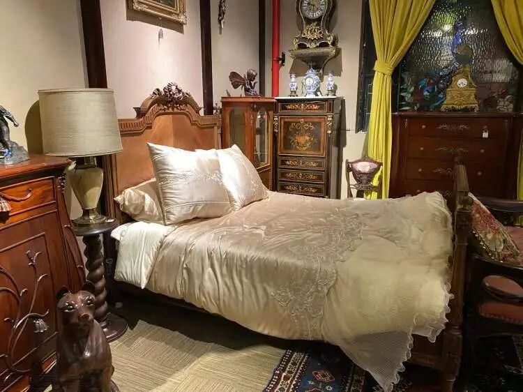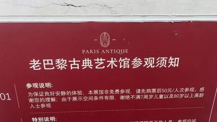 此后,老巴黎家居馆实行收费参观制,门票50元/人次,7岁以下和80岁以上者谢绝入场。这一举措引发了不少讨论,有人表示理解,认为合理收费能提升参观体验;也有部分游客觉得“网红打卡还要花钱”,选择放弃前往。韦美阳对此有着清醒的认知:“我的目标不是打造昙花一现的网红店,而是想营造一个有艺术氛围的交流空间。”收费限流后,展厅内的人流量趋于合理,既能保证游客有足够的空间欣赏展品,也能让真正热爱古董家具的客户安心选购、交流。