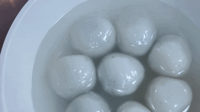 烧煮时也有诀窍,一看、二翻动、三加水、四勤清锅,这是汤团好吃的秘诀。