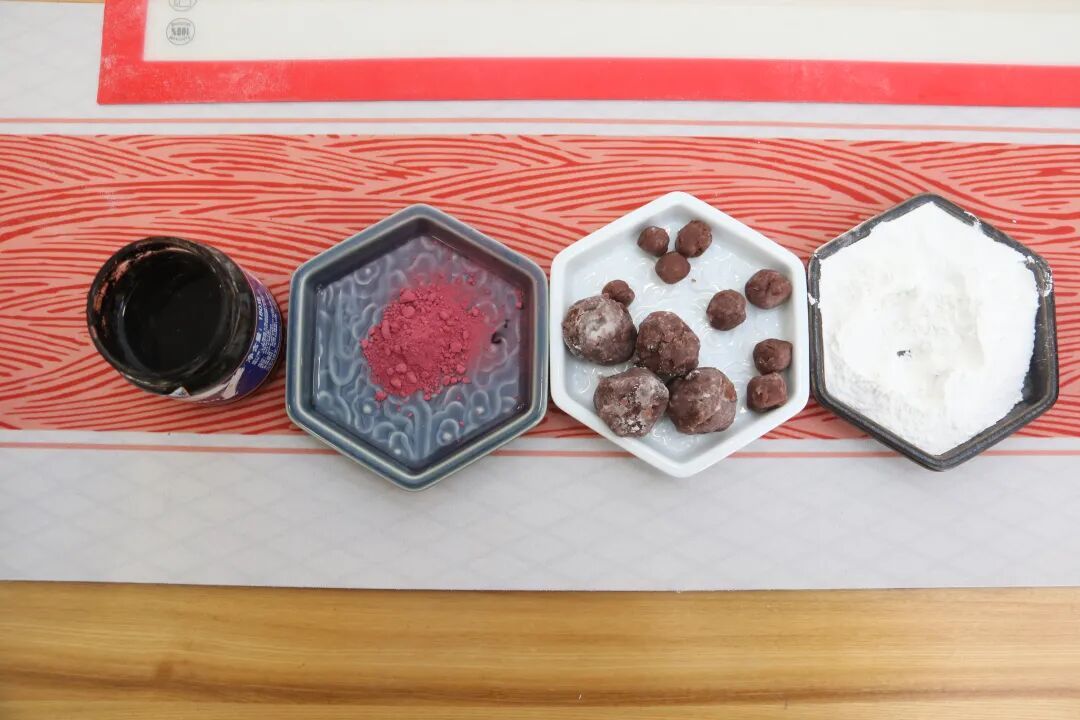 糯米粉、甜菜粉、墨鱼汁、豆沙馅