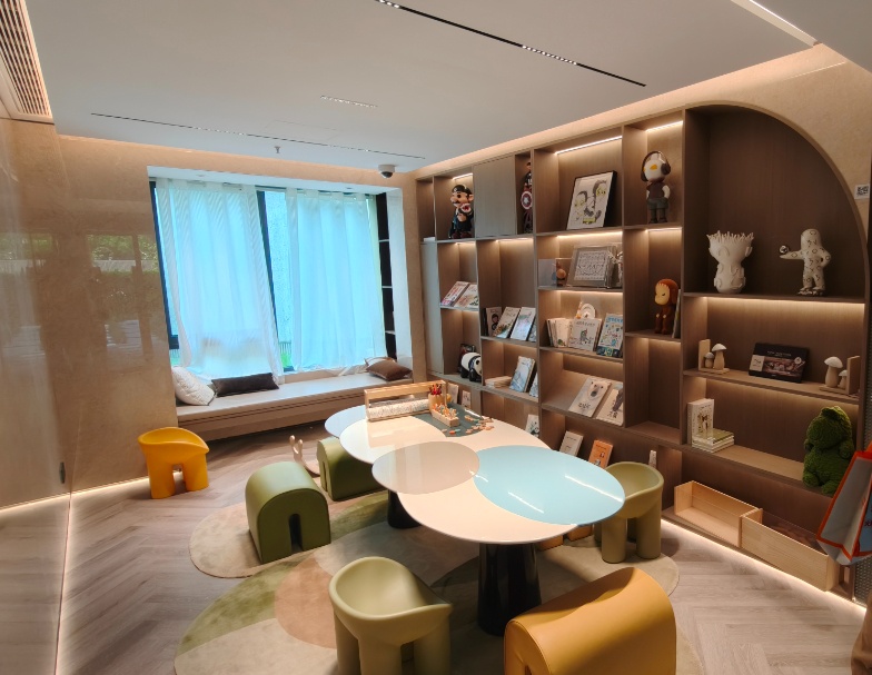 近日,嘉兴路街道招商云玺小区2号、5号楼下的架空层会所经过改造后,打造了专属居民的亲子幸福阵地,成为集“阅读+娱乐+实践+社交”于一体的复合型功能空间。
