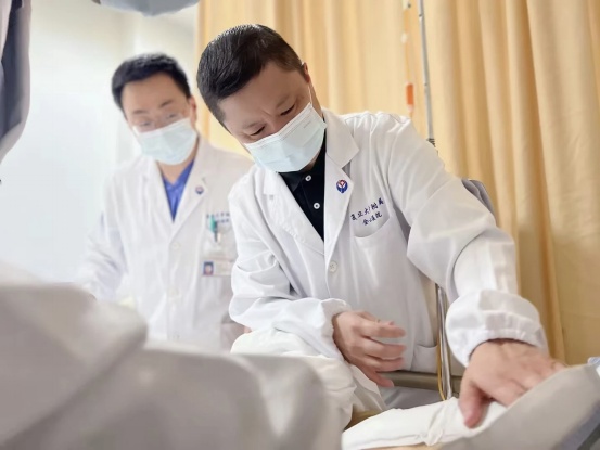 手术当天,在中山医院董智慧教授的带领下,手术团队默契配合、精准操作。凭借丰富的临床经验和精湛的介入技术,团队一气呵成完成了髂外动脉开通、肠系膜下动脉栓塞、腹主动脉支架植入及双侧髂内动脉重建等关键操作。整个手术过程创伤小、出血少,成功解除了患者体内的多重血管危机。康复出院的张老伯难掩激动,他连连感慨,原本以为自己的病又重又复杂,得跑到市区大医院才能治,没想到在金山医院就解决了大问题。“手术创伤小,恢复得也快,现在我走路再也不像以前那样费劲了。”