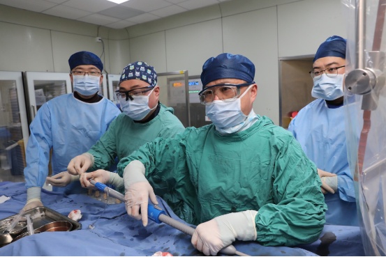 面对这一危重复杂的病情,金山医院血管介入科第一时间启动多学科协作(mdt)机制,迅速联动院内泌尿外科、麻醉科等相关科室专家开展联合会诊,并特邀医联体上级单位——复旦大学附属中山医院血管外科董智慧教授团队进行跨院区远程会诊。经过全面评估患者的身体状况、细致分析影像数据,医疗团队反复研讨论证,最终为张老伯量身定制了一套“一站式”微创手术方案:腹主动脉覆膜支架腔内隔绝术+双侧髂内动脉重建术+右侧髂外动脉成形术。该方案既精准“拆除”双侧动脉瘤这两处“炸弹”,又能通过血流重建保留髂内动脉功能、恢复下肢血供,最大限度降低盆腔脏器缺血风险,实现“清除病变与保留功能”的双重救治目标。