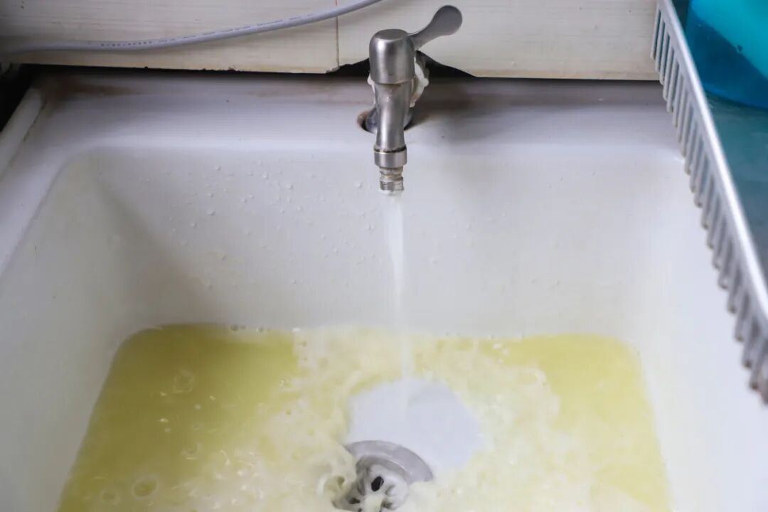 胡阿嬢家就是本次公益活动的对象,服务人员在水桶中倒入柠檬酸粉末,用50~60℃左右的温水溶解成柠檬酸溶液,柠檬酸与水的比例为1比15。接着连接变频脉冲设备和小气泵,关闭入户总水阀,断开进水口,拆除水龙头滤网、花洒,之后打开设备,往水管内注入柠檬酸,静置40分钟。最后使用脉冲和抽液脉冲功能完成收尾工作,脉冲将水管中的杂质污垢随先前注入的溶液冲到外面,抽液脉冲则用水桶内剩余的液体进行二次冲洗,彻底清除水管内的脏污。
