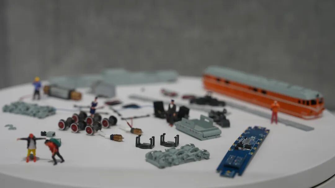 别看每个模型都不大,里面的零件可不少。在展览上,大家也可以看到被“解剖”的火车模型,转向架、驱动电机……几百个微缩零部件看得一清二楚,瞬间揭开火车模型“静可观赏、动可运行”的秘密。