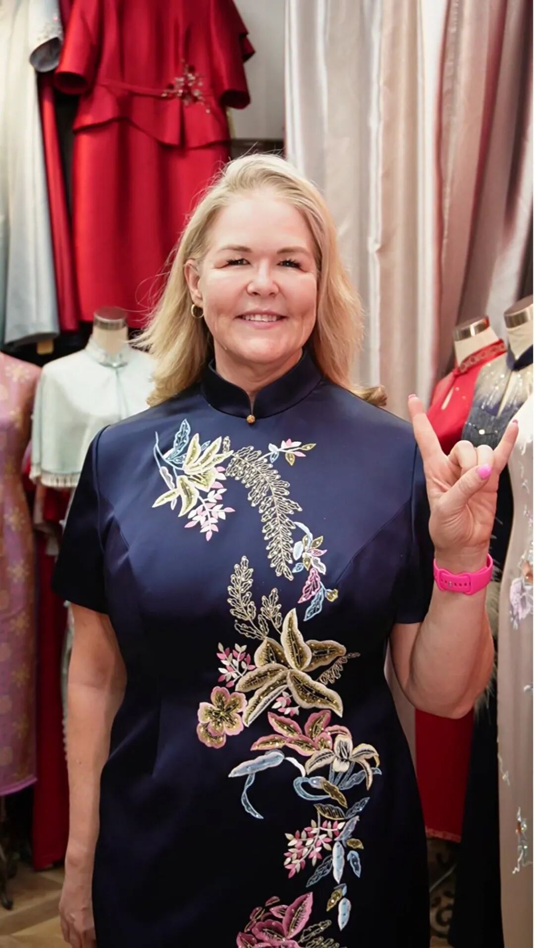 不只是欧美顾客,来自新加坡、马来西亚、菲律宾的华人家庭也频频现身。他们习惯全家一起定制:爸爸做西装、妈妈做旗袍、孩子做衬衫,一次性下单七八套并不稀奇。店主说:“东南亚的华人也过农历年,提前做一身红色新衣,是他们眼中的‘年味’。”