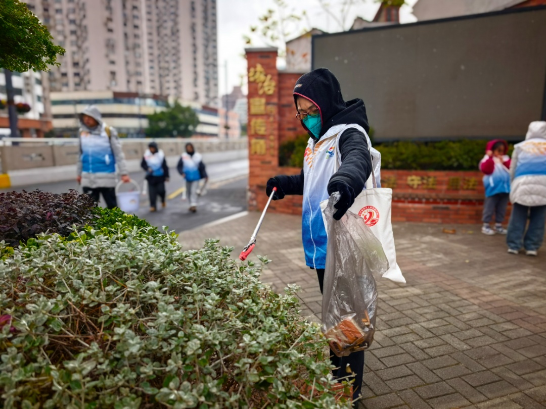 在亲子家庭专注完成任务的同时,成人志愿者队伍正沿着社区的主要干道和背街小巷,展开一场“垃圾不落地”的深度清洁行动。