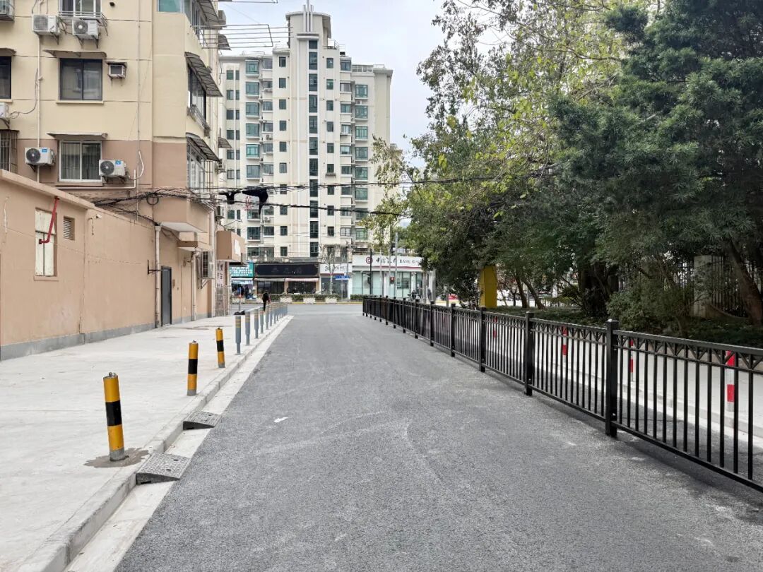 在长阳路2021弄,原本破损的路面得到重新铺设,新安装的护栏让人车分流更加清晰;杭州路66弄新增的路灯照亮了居民晚归的路,修整后的围栏和人行道进一步消除了安全隐患。