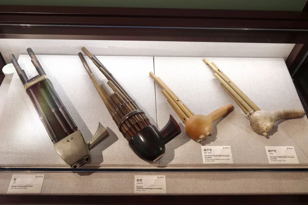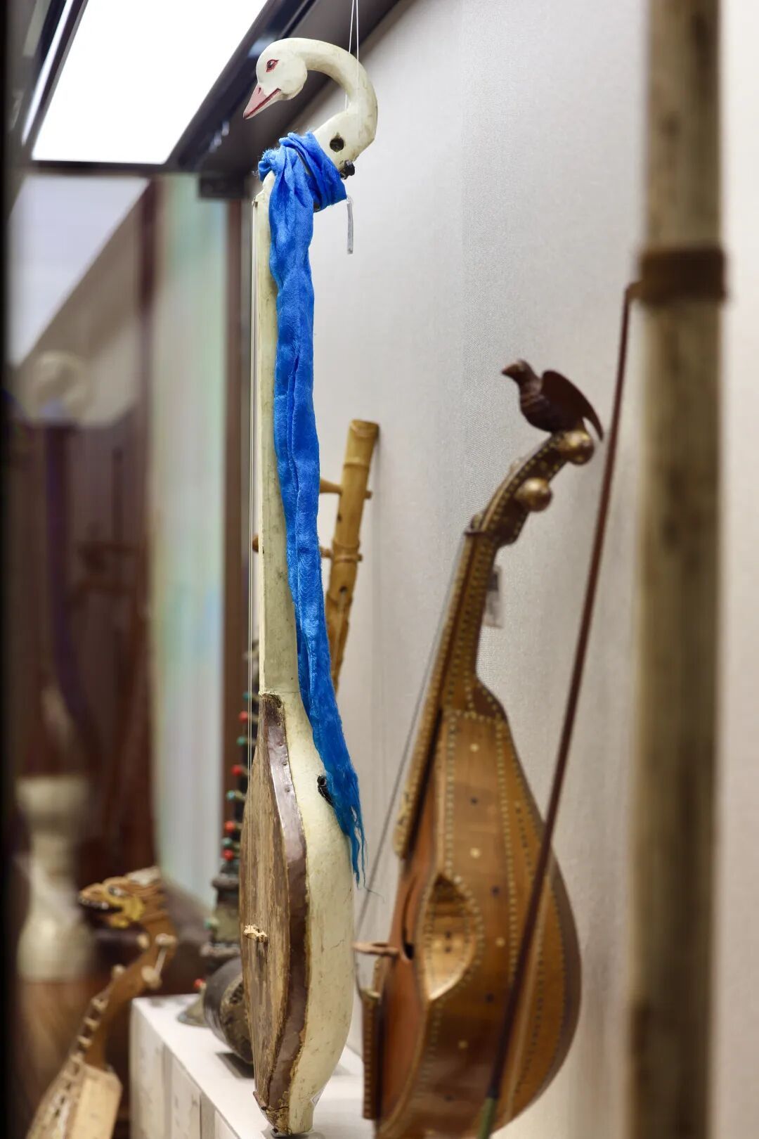 “弦歌越海”专题展尤为亮眼,集中呈现上海音乐学院刘英教授团队五年深耕的国家社科基金重大项目成果,让少数民族器乐艺术的魅力绽放。从八千年贾湖骨笛到现代旋律,从马头琴的草原长调到古筝的江南婉转,展览如流动的乐章,演绎着中华优秀传统文化的创造性转化。