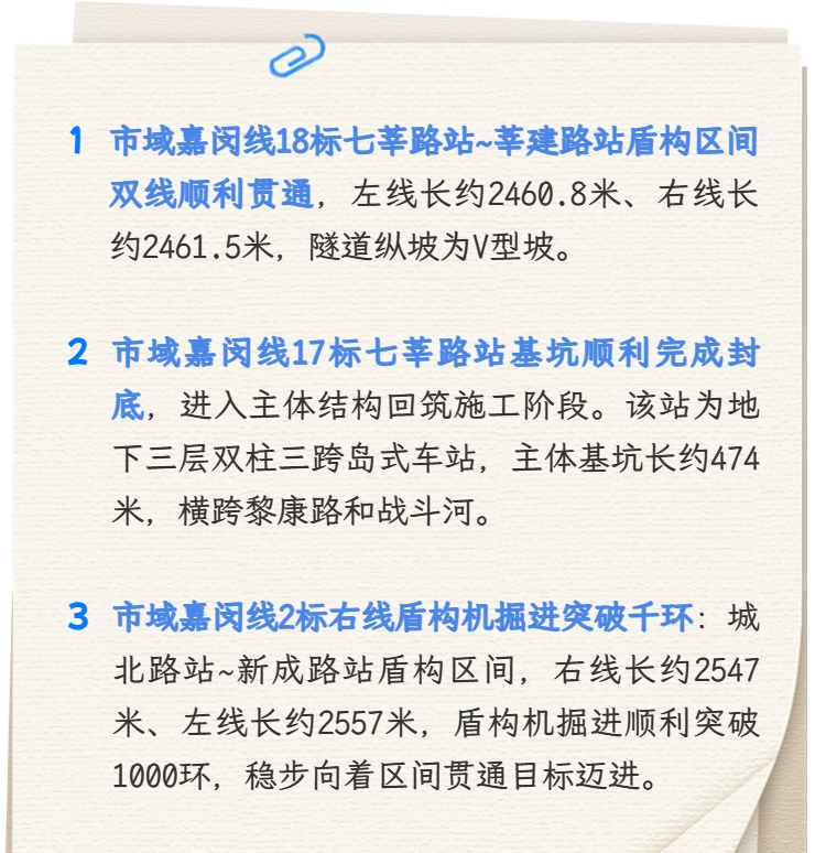 市域嘉闵线18标七莘路站~莘建路站盾构区间双线顺利贯通,市域嘉闵线17标七莘路站基坑顺利完成封底,市域嘉闵线2标右线盾构机掘进突破千环,嘉闵线多个项目迎来建设新进展。详见↓