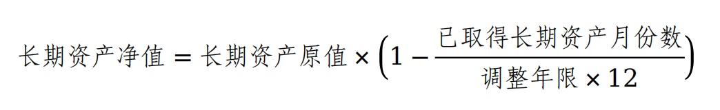 已取得长期资产月份数,自本办法第十七条规定的调整年限起始之月起计算。