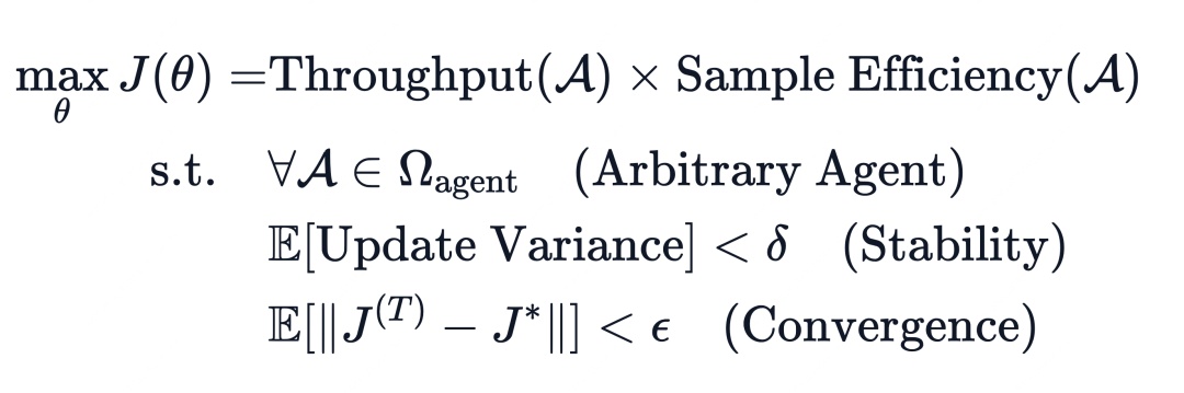 在深入探讨架构设计之前,我们首先将 agent 强化学习系统的优化目标形式化为“最大化有效训练收益(j)”: