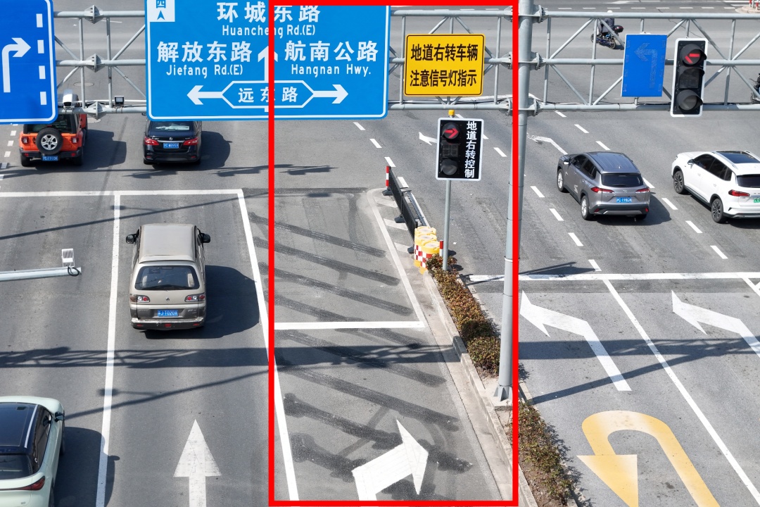 为提升通行效率,公安交管部门在该处增设右转信号灯,并巧妙利用南北向左转的信号灯时段,允许地道驶出车辆右转。这一优化措施在不增加信号灯周期时间的基础上,安全有效地分离了不同方向的车流,既减少了交通冲突点,也提高了路口的整体通行效率。