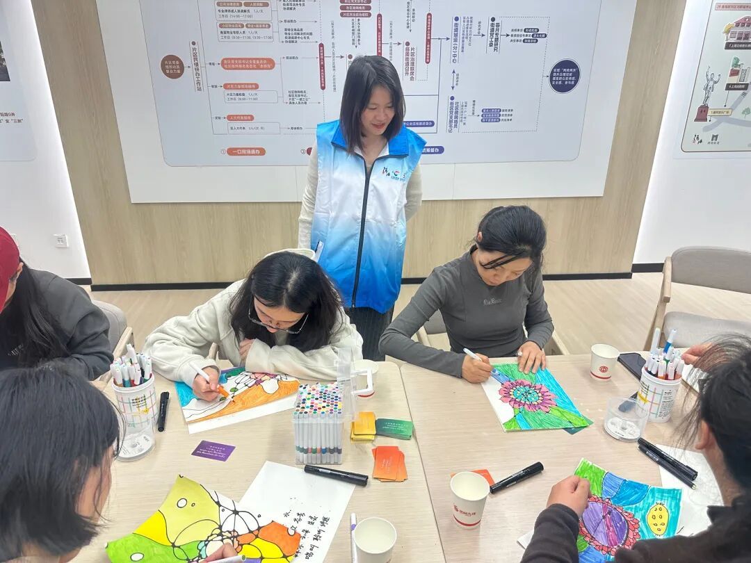 围绕“她力量·心莲开”主题,张凤珈先后在复兴西路8号党群服务中心、环贸党群服务中心开展活动,聚焦女性“情感释放”与“生命绽放”,引导三十余名白领女性在绘画中自我觉察,在交流中倾诉心声。大家分享着工作与生活中的压力与烦恼,相互鼓励、彼此宽慰,不少白领还主动表达了加入“梧桐合伙人”、分享自身特长的强烈意愿,让女性力量在梧桐树下凝聚、绽放。