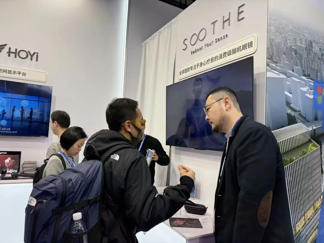 脑舒科技的展台则呈现出另一番景象:半封闭体验区里,观众戴上soothe bci脑机接口智能终端,闭上眼睛沉浸在视听疗愈中,短短几分钟后醒来,不少人脱口而出“太神奇了”“感觉像做了一场深度冥想”。记者在现场看到,体验区几乎没有空闲时刻,甚至有观众排队体验两次。数十家康养机构、健康科技企业现场对接合作意向。
