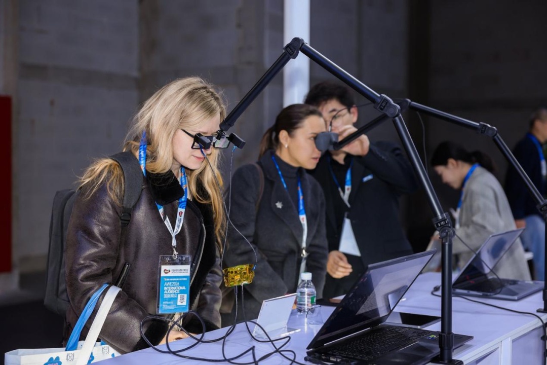 同样自带“技术含金量”的还有极溯视界。在“视听静界·π空间”展台,这家企业展出的双眼8k分辨率vr pancake光学模组和入眼亮度达6000nit的ar光波导模组,吸引了大批硬件厂商、终端设备研发企业的代表。记者注意到,观众们没有走马观花,而是拿出名片就光学模组定制与企业进行深度洽谈,并现场达成了不少初步合作意向。