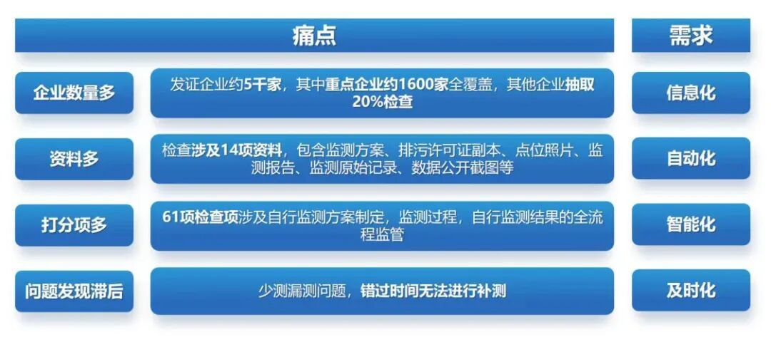 本应用场景以信息化、自动化、智能化、及时化为目标,运用人工智能技术破解自行监测监管痛点,提升监管效率与精准度。