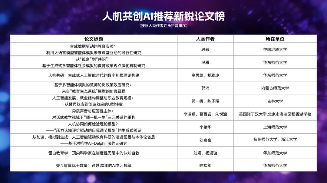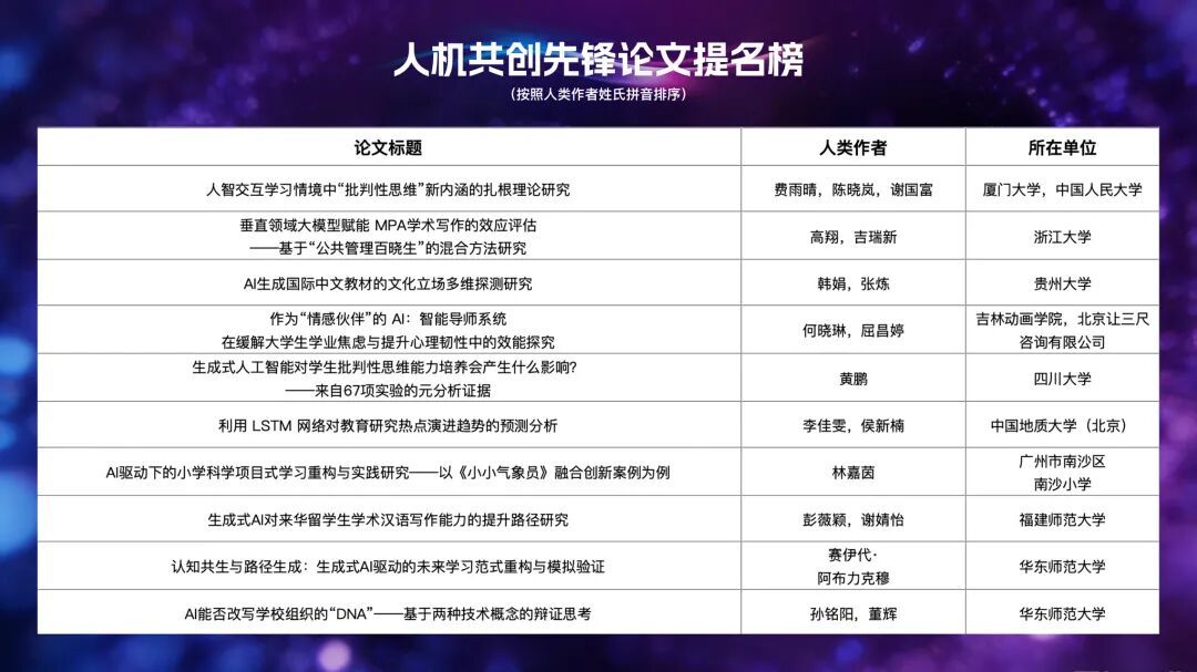 经过ai初审与专家复审,评选出“人机共创先锋论文”10篇,“人机共创先锋论文提名奖”20个。征文发起方还运用国内外多个先进大模型,聚焦“创新性”这一核心指标,对所有通过伦理规范审查的论文进行逐一比对和排序,最终评选出“人机共创ai推荐新锐论文”17篇。值得一提的是,“人机共创ai推荐新锐论文”榜单中出现了高中生的身影。(完整榜单见文末)