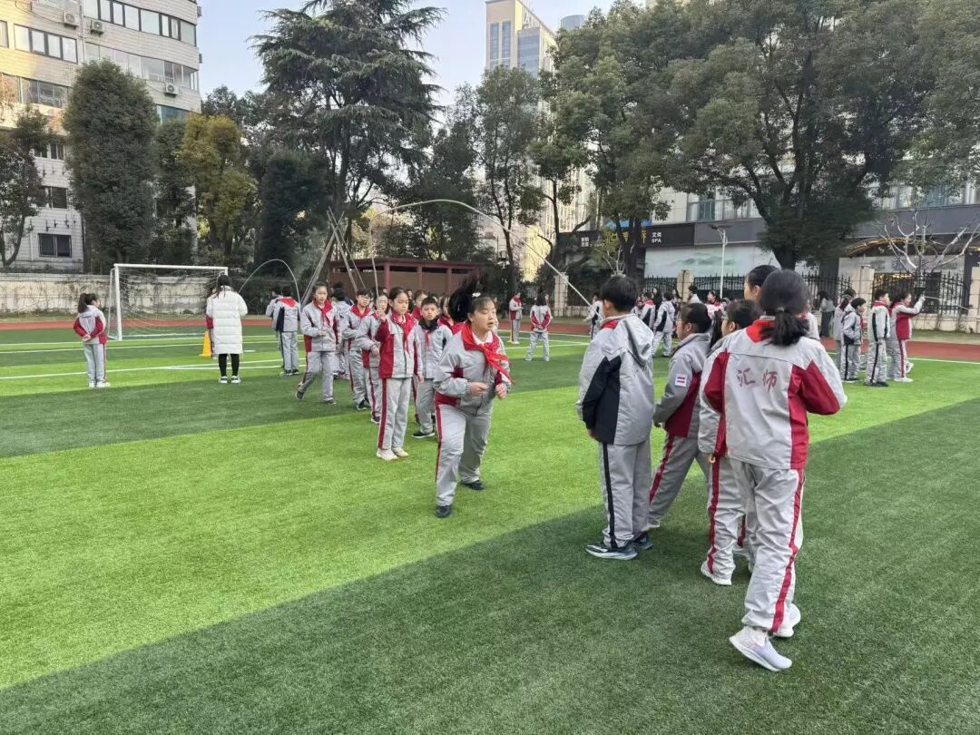 学校利用场地及资源优势,开设汇动“晨锻”“午锻”:“晨锻”分年级开展自主锻炼活动,学生可自主选择跳绳、篮球、足球、排球、晨跑及体锻屏体能等锻炼形式开展体育活动;“午锻”在班主任或副班主任陪同下以体活课内容,开展体能、球类、趣味活动、体锻屏挑战等自主锻炼。