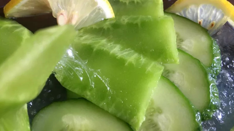 山阳田园的可食用仙人掌可以生吃,也可以炒着吃,还能烤着吃。鲜榨的仙人掌汁,青草味香浓,解腻解渴。