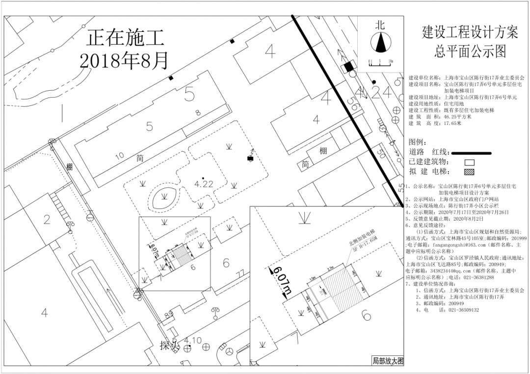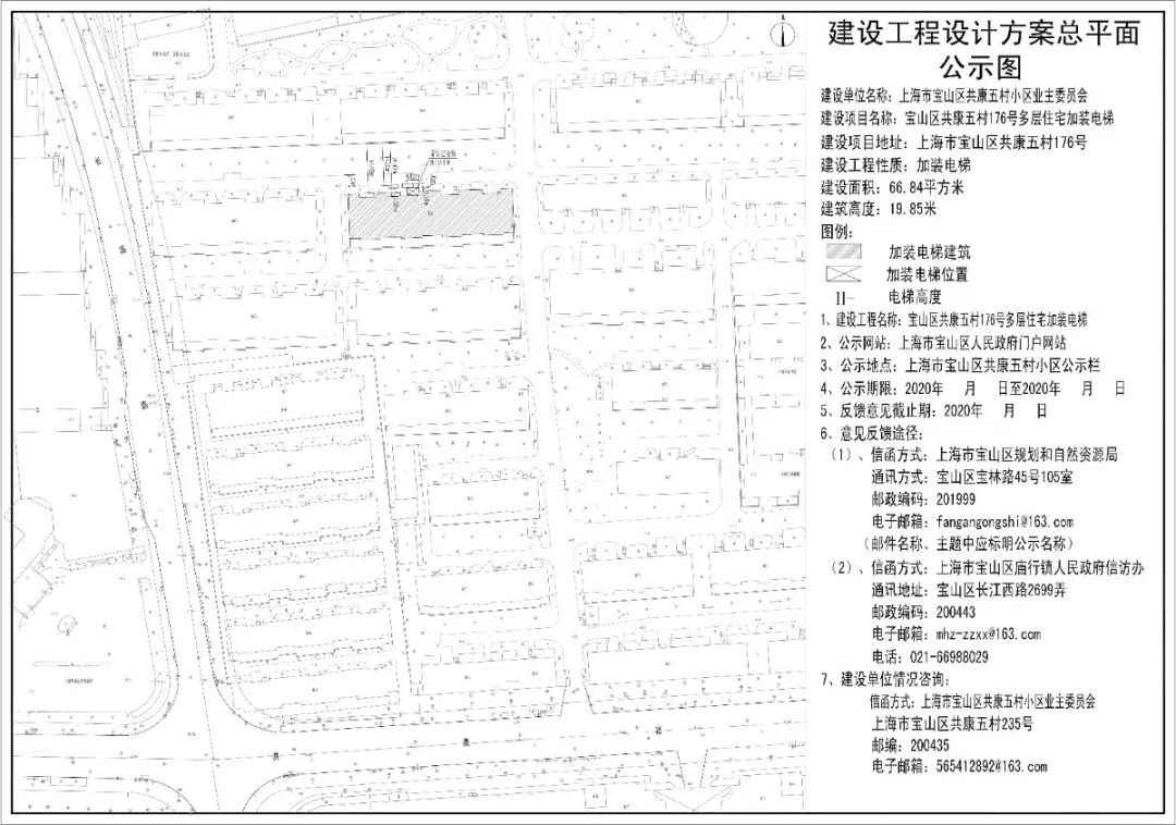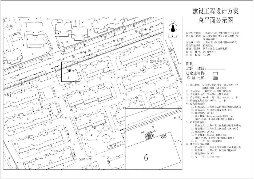 宝山区通河六村和田小区141号单元多层住宅、共康五村176号多层住宅、陈行街17弄7号单元多层住宅、陈行街17弄6号单元多层住宅、宝林四村66号单元多层住宅、宝林五村31号单元多层住宅加装电梯项目设计方案目前正在进行公示,详见下。