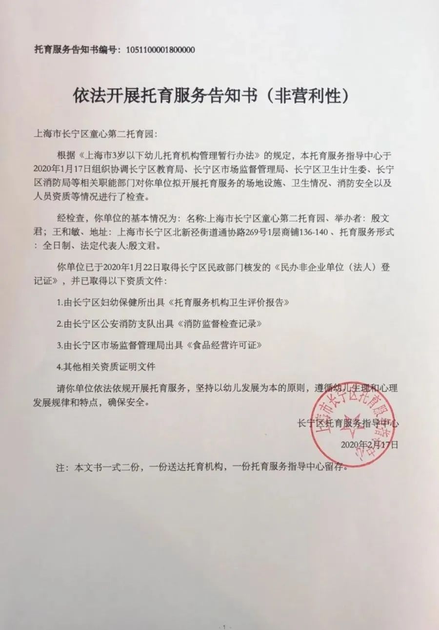 童心托育园是长宁区首家政府实事项目幼儿托育园,于2018年开业招生。童心第二托育园与童心托育园背景相同,由闻广教育、闻广艺术团创始人王和敏、殷文君投资创办。目前,托育园已由长宁区托育指导中心、消防、公安、食药监、卫生、妇幼、疾控等各部门验收合格。