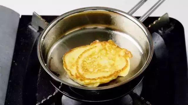 3.烧热平底锅,放少许油,然后用汤匙盛煎饼糊倒入锅中,用中小火将之煎至两面金黄即可。
