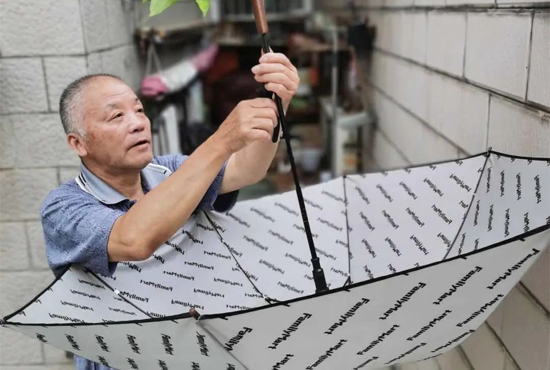 有了“以旧换新”的初体验后,老庞修伞的热情便一发不可收拾,就连路过垃圾房,看见别人丢弃的旧雨伞都要带回家。用他的话说,能修好就修,不能修了就把还能用的部件拆下来备用着,留着修补其他的雨伞。